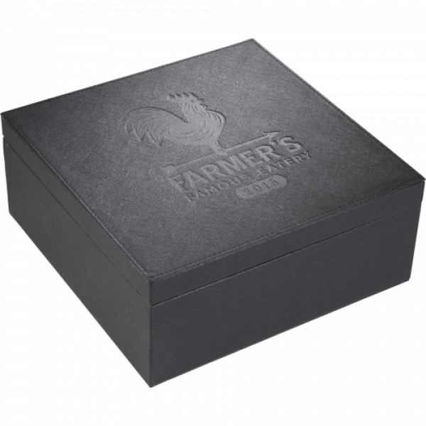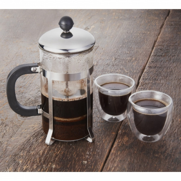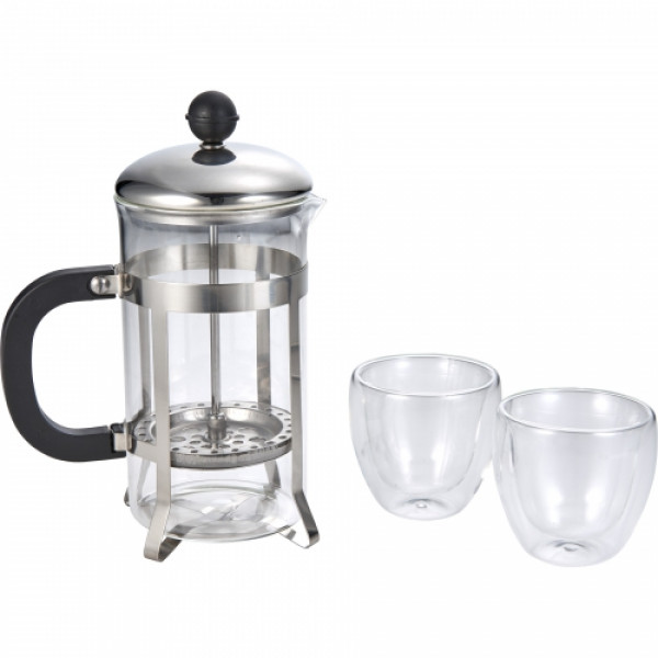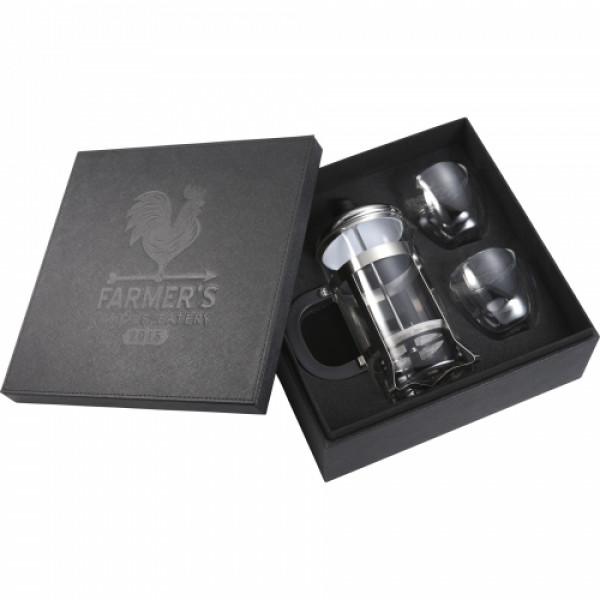 This is the perfect set for coffee lovers. ::It comes with a coffee press and 2 double wall coffee glasses. ::The set can be stored in the sleek Modena box when not in use.