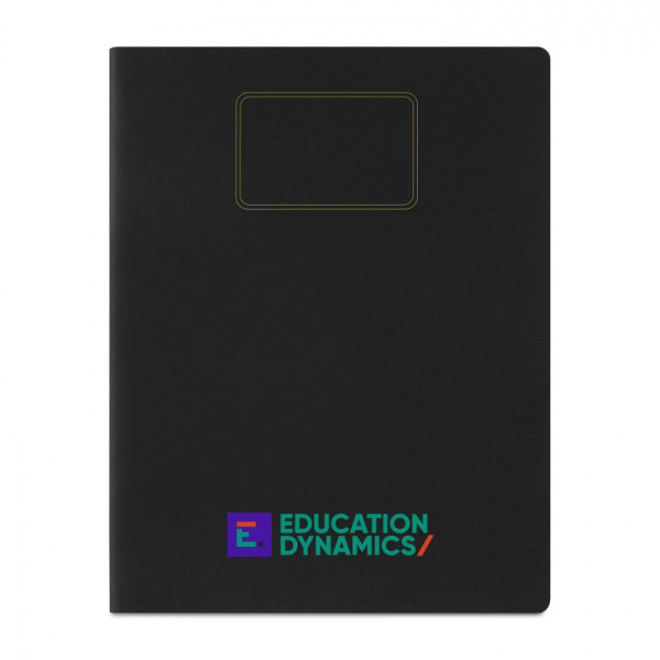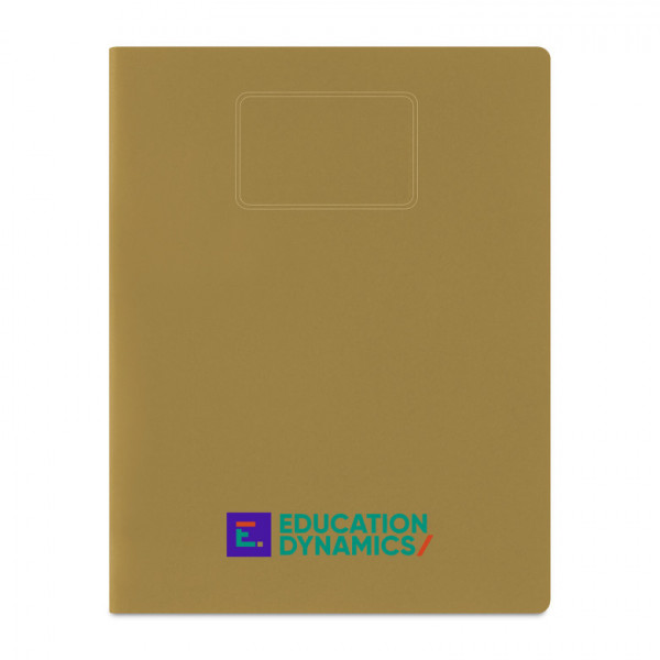 - Flexible cardboard cover with rounded corners and visible stitching