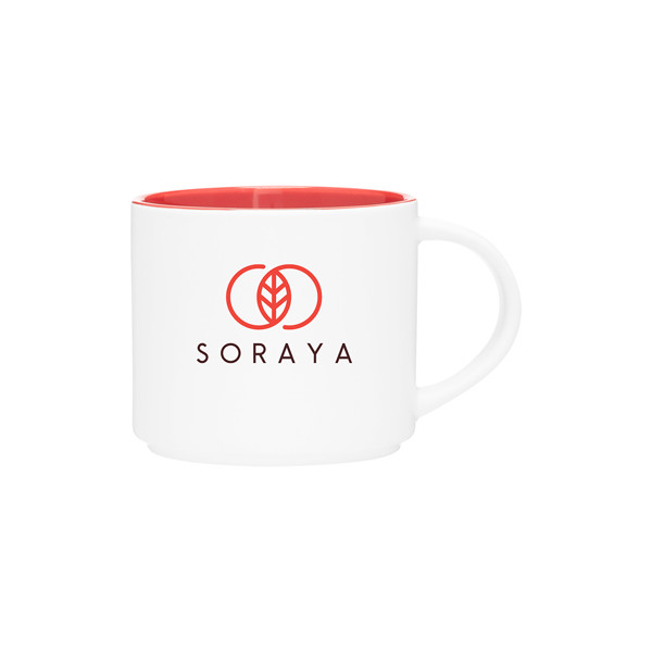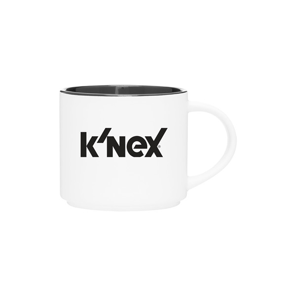 Clean and contemporary, this 16 oz ceramic mug is designed for both function and style. Its stackable form and minimalist two-tone finish make it ideal for cafés, offices, or giveaways. A great choice for a custom-branded promotional item, it adds everyday utility with a modern edge.
