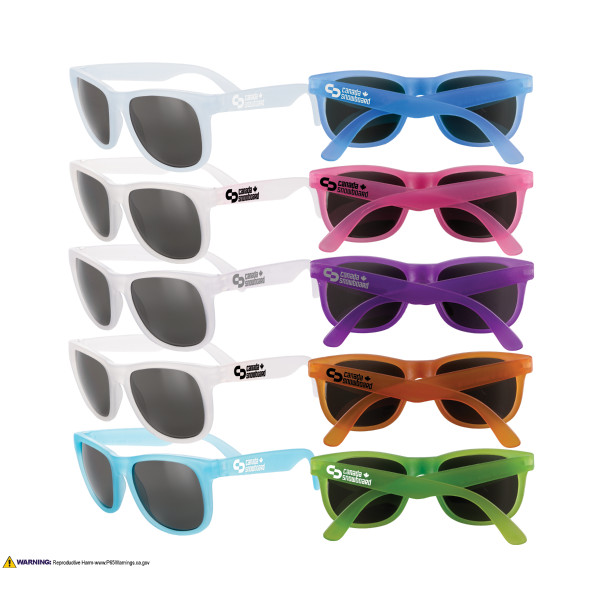 Draw attention with these exciting new UV ray activated sunglasses. When exposed to sunlight the color of the sunglasses transforms. They feature a dark, ultraviolet protective lenses.::UV 400 rating that will protect your eyes from the bright sun.
