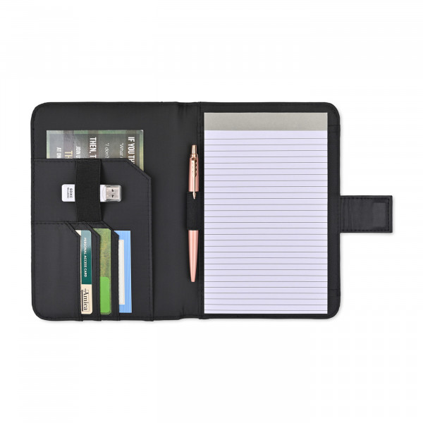 Stay organized and professional with this sleek vegan leather junior padfolio, perfect for meetings, conferences, or daily planning. Designed with both style and functionality in mind, this modern padfolio makes an excellent promotional product that can be custom branded to showcase your logo or message.