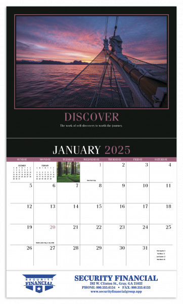 13-Month calendar with December month printed on the backmount This calendar is printed on paper from FSC and SFI certified mills Gloss paper stock with UV coated cover High-quality imagery Top markets: Retail, financial and insuranceDetails