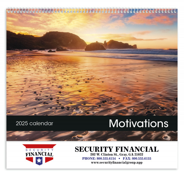Impress and inspire with dynamic images and motivational quotes in this calendar.
