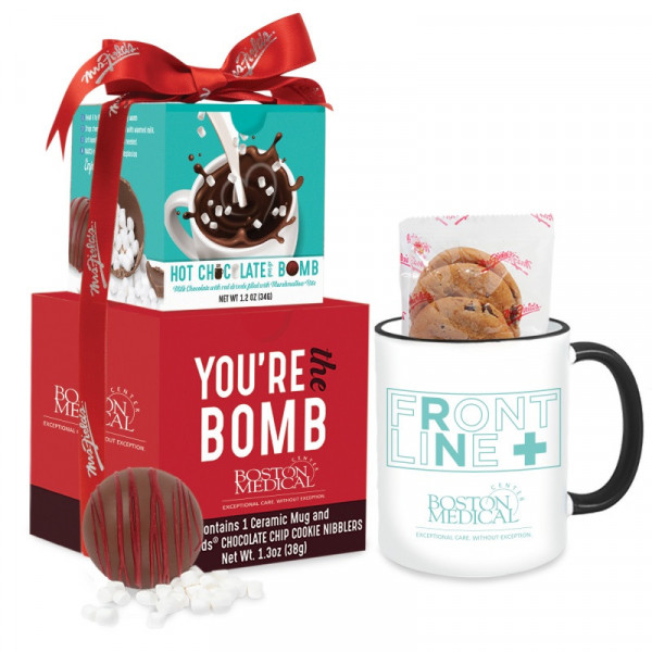 - Customizable full-color mug, mug gift box, and hot chocolate bomb box