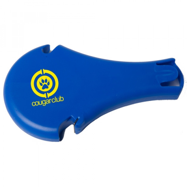 ::Twist-off bottle cap opener::Separate notch to lift heavy soup can tabs::Bottle cap wrench with metal insert::Tab puller for opening soda cans