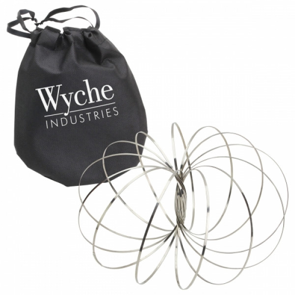 ::Interactive, kinetic 3-dimensional flow rings::Relaxing, soothing & easy-to-use::Larger 15cm diameter::Aluminum construction::Silver rings in black non-woven carrying pouch