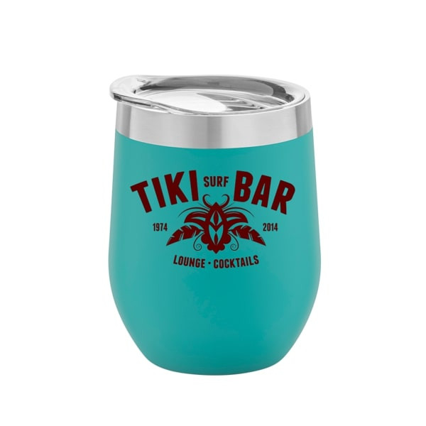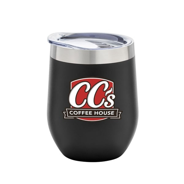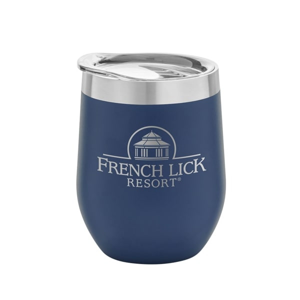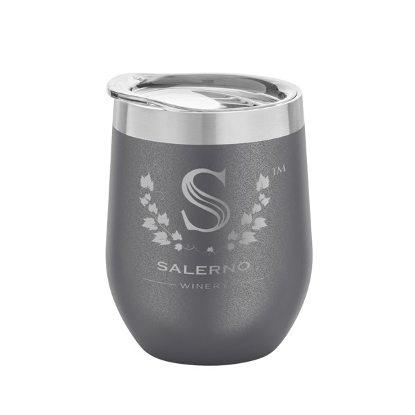 12 oz. Vacuum insulated double wall stemless wine tumbler with clear AS pressure lid. 18/8 Stainless Steel with copper lining. Not microwave safe; hand wash only. Packaged in retail box (4-3/4” L X 3-7/10” W X 3-7/10” D).