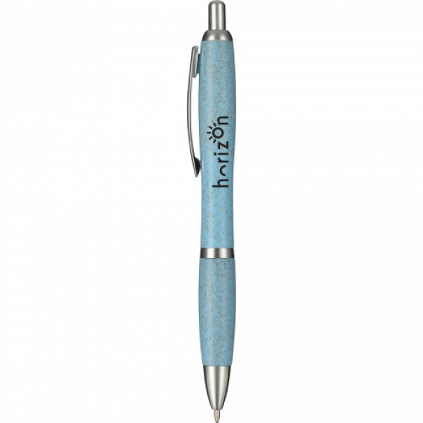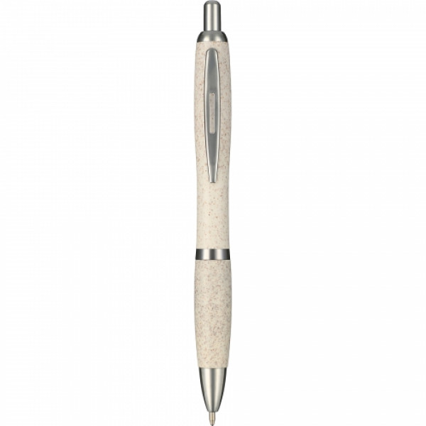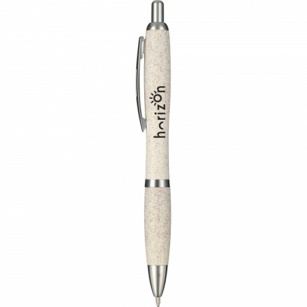 The Wheat Straw Nash Ballpoint features a 45% wheat straw barrel with chrome accents. Click action mechanism. Black ink cartridge.