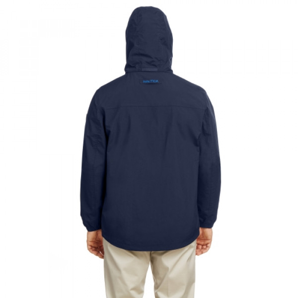 ::100% nylon weather-resistant fabric::Polyester mesh-lined hoodFeatures:::Packable hood with adjustable toggle::Storm flap with branded Nautica zipper::Welt hand pockets::Elastic cuffs::Hem cinch-cord::Branded rubber Nautica patch on left sleeve::Back locker loop with Nautica branding