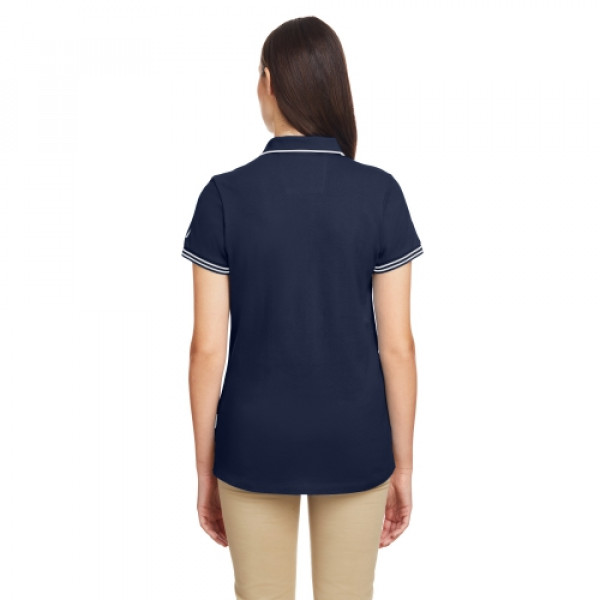 Fabric:::60% cotton, 40% polyesterFeatures:::Split neck ribbed collar with striped tipping::Striped neck tape::Short sleeves with ribbed trim::Side slit hem::J-Class logo on left sleeve::Classic Nautica flag label at left side seam