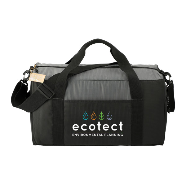The NBN Trailhead Recycled Duffel features a roomy zippered main compartment as well as a zippered interior pocket.