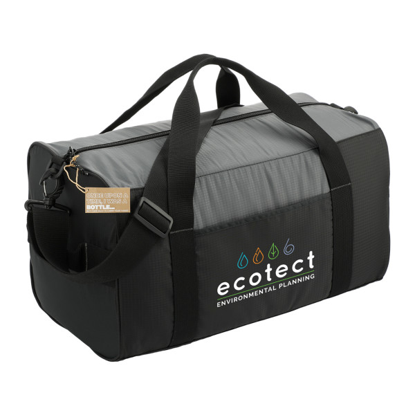 The side-webbing grab handle, top-webbing grab handles and adjustable, removable shoulder strap offer different ways to carry this recycled duffel.
