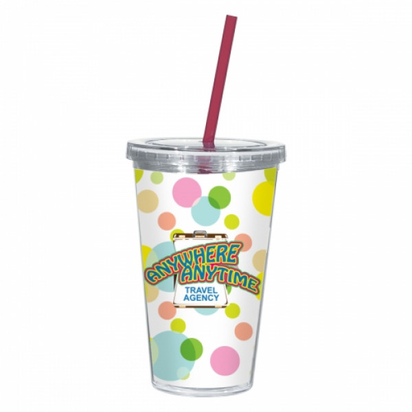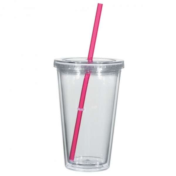 ::Acrylic Outer And Inner::Double Wall Construction For Insulation Of Hot Or Cold Liquids::Decoration Is Inserted Between The Clear Double Walls Of The Tumbler Then Ultrasonically ::Sealed To Provide Double Wall Insulation::Screw On, Spill-Resistant Lid With Matching 9" Straw::Stain Resistant::Meets FDA Requirements::BPA Free::Hand Wash Recommended