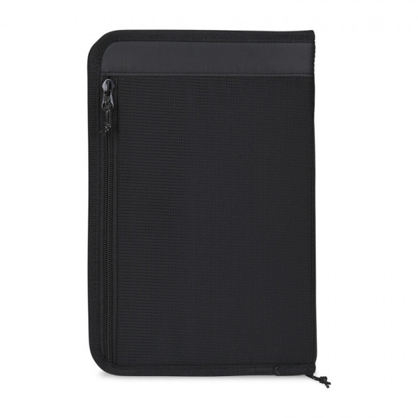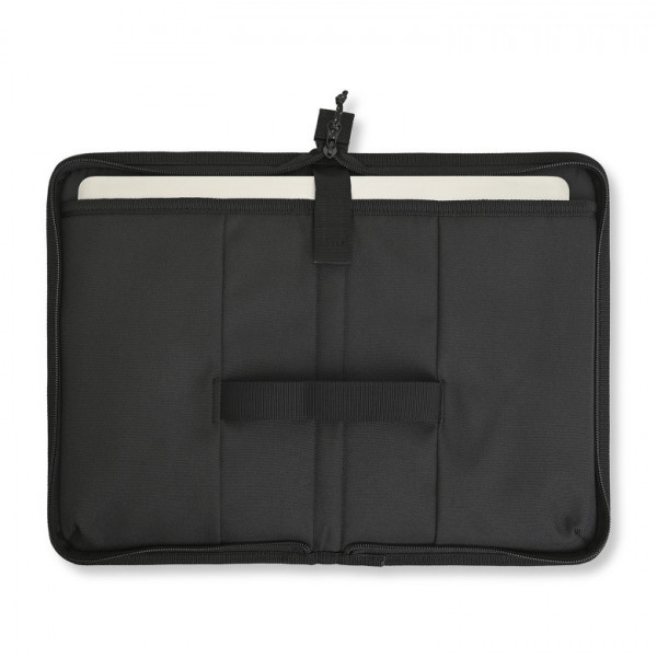 - External open pocket with webbing strap holds notebooks, tablets, or iPads