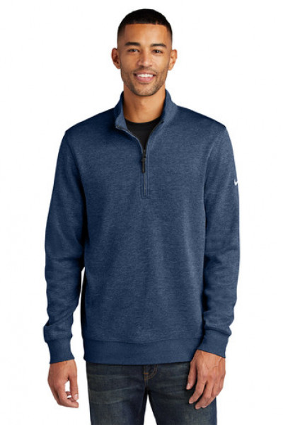 Made from at least 75% recycled polyester fabric, Nike has engineered a cover-up that looks and feels like your favorite sweater—but is ready to perform with Dri-FIT technology. Design details include a cadet collar, reverse coil zipper with faux leather zipper pull, rib knit cuffs and rib knit hem. A contrast Swoosh logo is embroidered on left sleeve and center back neck. Made of 8.3-ounce polyester Dri-FIT fabric.