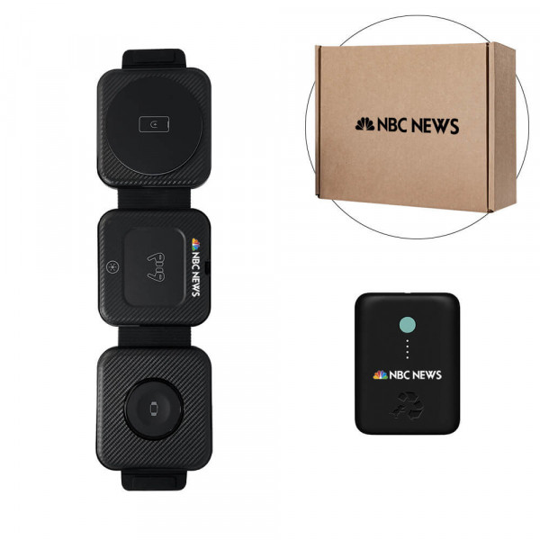 This custom set is the perfect holiday gift for that frequent flyer and road warrior in your life! Includes a Tangelo ChargeLux 3 In 1 Magnetic Folding Wireless Charger, and for when you run out of juice, a Nimble Champ Lite Portable Charger. Include a custom greeting card for another level of appreciation.