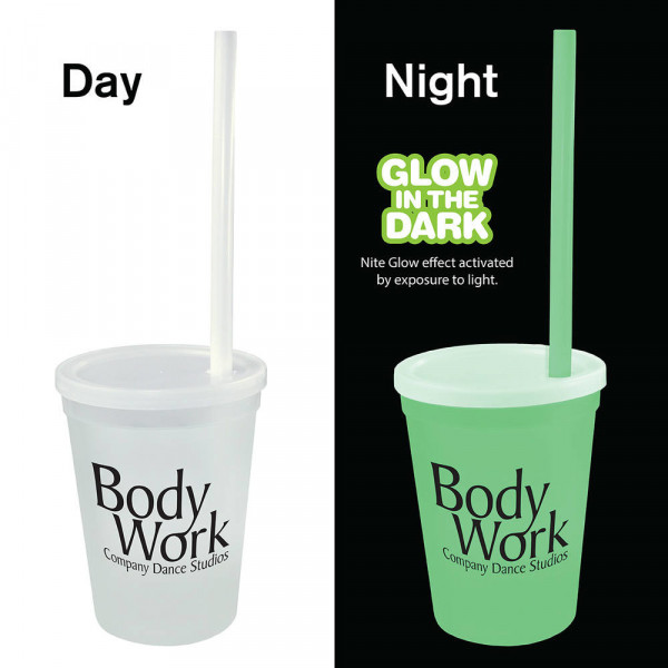 Light up your brand with the 12 oz. Nite Glow Stadium Cup Set, a fun and functional giveaway that glows in the dark after light exposure. Ideal for evening events, parties, or custom promotional campaigns, this eye-catching set includes a glow-in-the-dark cup and straw with a frosted lid, all ready to be decorated with your logo.