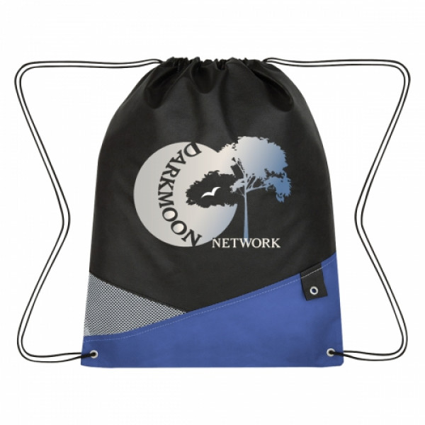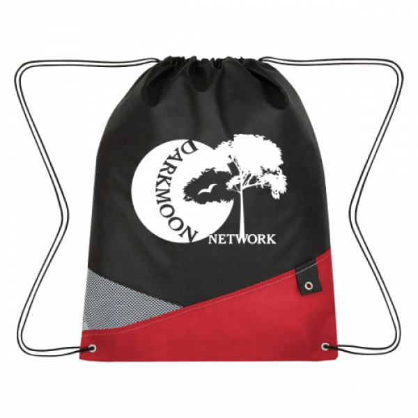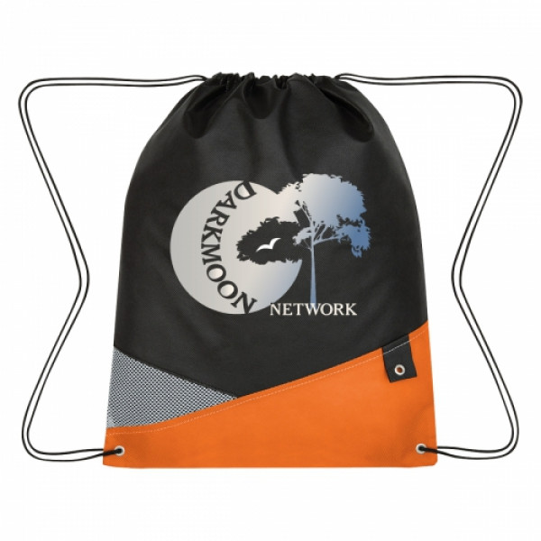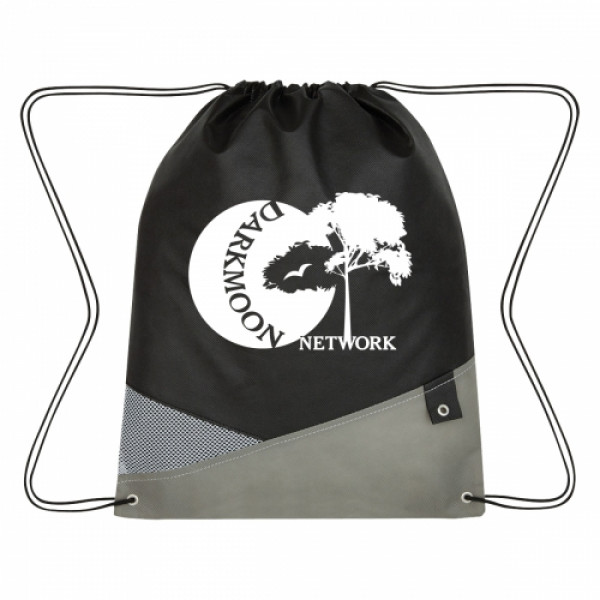 ::Made Of 80 Gram Non-Woven, Coated Water-Resistant Polypropylene::Mesh Triangle Accent::Grommet Attachment For Keys, Etc.::Reinforced Eyelets::Drawstring Closure::Spot Clean/Air Dry