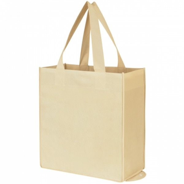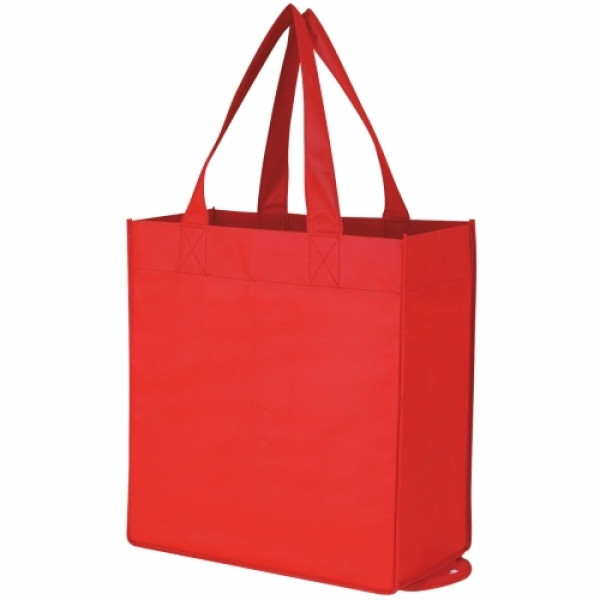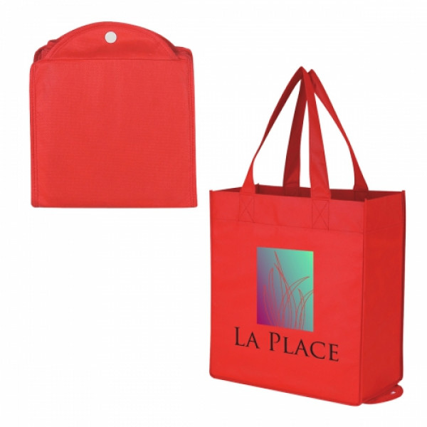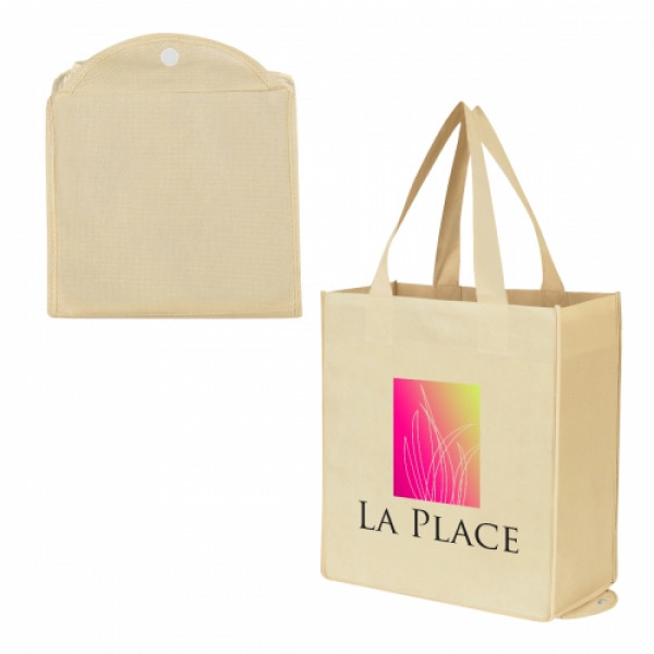 ::Made Of 80 Gram Non-Woven, Coated Water-Resistant Polypropylene::Folds Down For Convenient Storage::Snap Closure::Great For Grocery Stores, Markets, Book Stores, Etc.::Reusable::Recyclable::20" Handles::Spot Clean/Air Dry