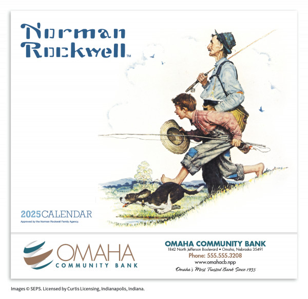 Norman Rockwell appointment calendar folds to 10 7/8" w x 10" h. Stapled (standard).