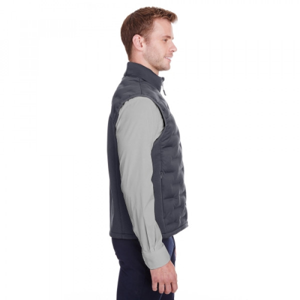 ::4 oz.yd/2 / 135 gsm, 3-Layer 100% polyester stretch jersey with 6,000 mm bonded waterproof membrane::Polyester taffeta lining::20g polyester UTK SubDown™ fill::Contrast 6.5 oz/yd² / 225 gsm, 91% polyester, 9% spandex bonded knit panels::Front panel laminated stretch shell with welded puffer channelling::Center front coil zipper with contrast teeth, autolock slider and rubber toggle::Dyed to match stretch binding::Lower pockets with invisible zippers::Audio port access through inside left pocket::UTK Hydropel::Water-resistant::Windsmart technology::Active fit::Easy care