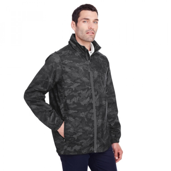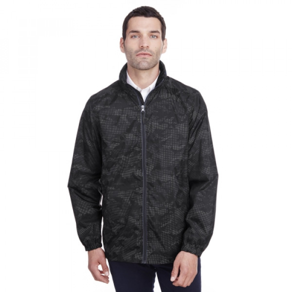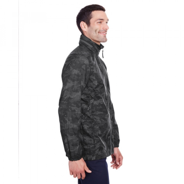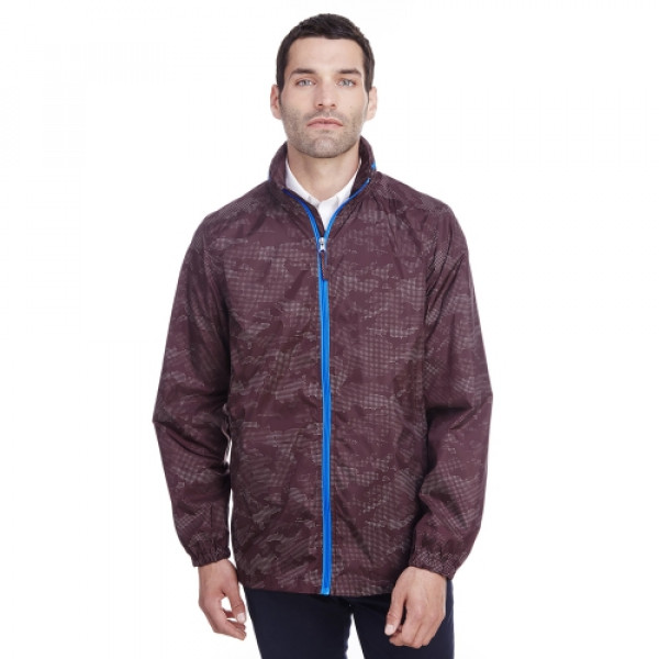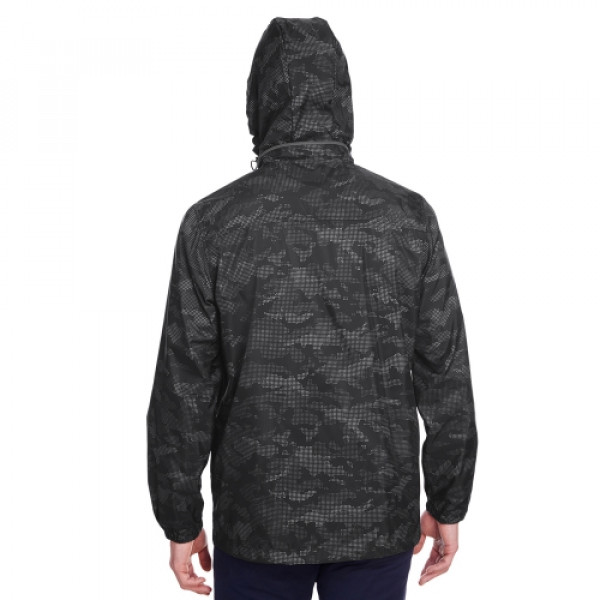 ::2.3 oz/yd² / 78 gsm, 100% polyester with reflective print and UTK Hydropel™ water resistant finish::UTK Hydropel™ technology repels water without sacrificing comfort in wet conditions::Inside storm placket with chin guard::Center front contrast coil zipper with autolock slider and decorative self fabric pull::Rollaway adjustable hood::Lower front concealed zippered pockets::Elasticized cuffs