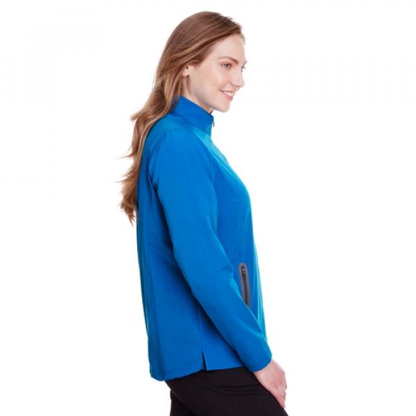 ::3.7 oz/yd² / 125 gsm, 80% polyester, 20% polypropylene dobby with moisture-wicking and uv protection performance::Center front contrast coil zipper with semi-autolock slider and rubber pull::Side vents::Lower front pockets with contrast coil zippers and laser cut overlays::Princess seams for flattering feminine fit::Stretch performance::Active fit::Easy care