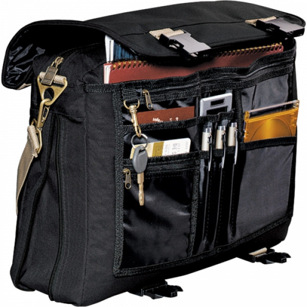 ::Deluxe organizer for phones, business accessories, and files. ::Smooth plastic snap closure on flap. ::Detachable, adjustable shoulder strap.