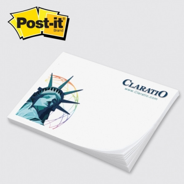 :: 3" x 4" Post It® adhesive notes with 50 sheets <br />::Full value. Full color with no set up costs! !Great for multi-color artwork.<br />::The low cost option—same great Post-it® Brand promise, service and delivery. Printing with process inks keeps it simple and saves money!<br />::Value Pricing allows you to design with as many colors as you wish and print all for a single price.<br />::Available in recycled paper for your eco-friendly initiatives. (add 10% to base price)<br />::White paper only.<br />::Adhesive on 4" side.