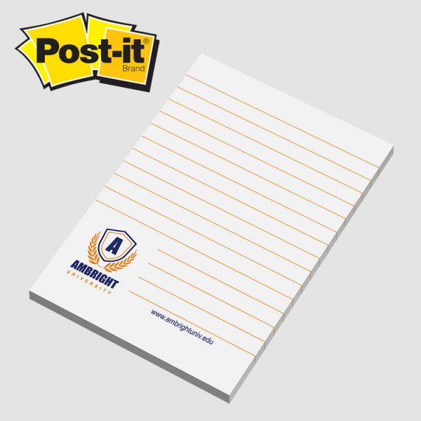::4" x 6" Post It® notes with 25 sheets:: 1 PMS color matched imprint for those precise promotions::Free set-up, Free screens, Free PMS inks (fluorescent, special mix and metallic inks not included), Free ruled lines upon request::Sorry, no bleeds