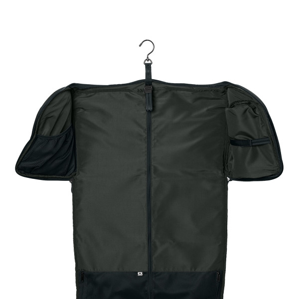 - Main compartment keeps garments hanging neatly when fully unzipped