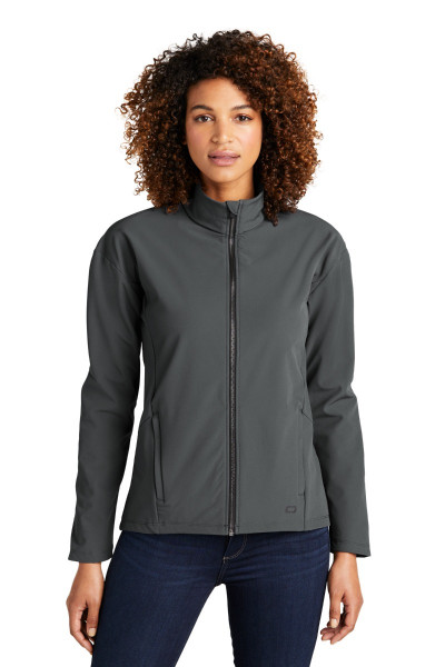 88/12 poly/spandex with durable water-repellent (DWR) finish Grid microfleece lining for warmth 5000MM fabric waterproof rating 5000G/M2 fabric breathability rating Heat transfer OGIO back neck label Molded center front zipper Drop shoulder Black reflective taping along shoulders and sleeves and down center back Zippered side pockets with a hidden mesh pocket for valuables or phone Black reflective O heat transfer on front left hem Drop tail hemDetails