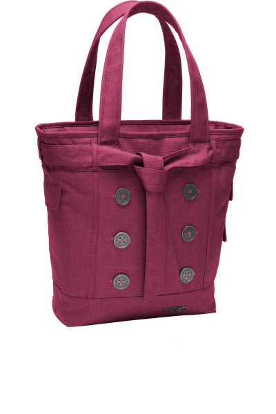 Large metal buttons give this feminine tote a classy look, while padded tech compartments make it perfect for work or school.