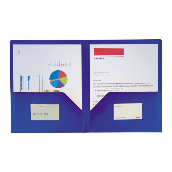 Material: Polypropylene Two interior document pockets Die-cut business card holdersDetails