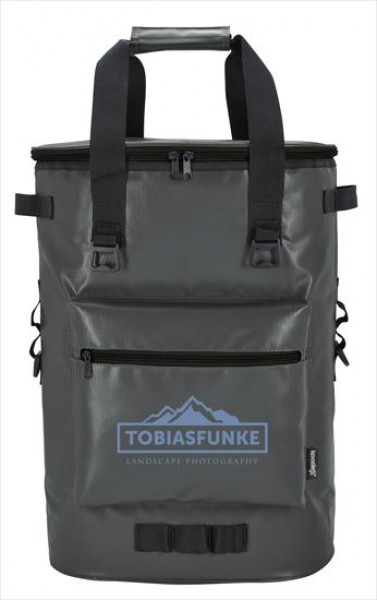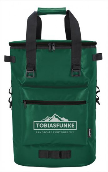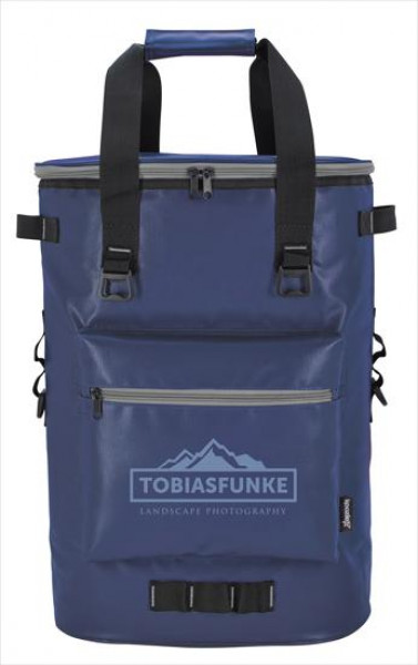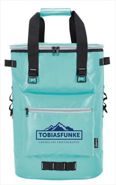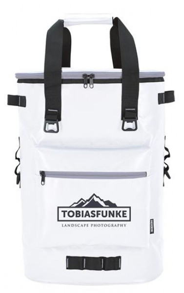 This premium Koozie® Olympic Cooler Backpack is the perfect way to carry your refreshments for a day of fun.::Main zippered compartment and front zippered pocket::26L Capacity::Two front attached bottle openers::Wrapped top carry handle and additional side carry handles::Padded mesh back and shoulder straps for added comfort::Heat-sealed PEVA liner::Holds ice for up to 30 hours