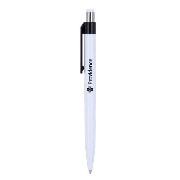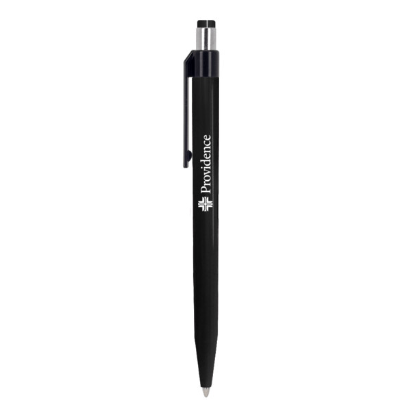 Crafted from recycled ABS material, this sleek and sustainable pen is designed to make an impact—both on paper and the planet. Its stylish black-accented barrel, matching chromed plunger, and smooth black ink combine functionality with modern flair. Ideal as a promotional product, it can be custom branded to highlight your company’s eco-conscious message.