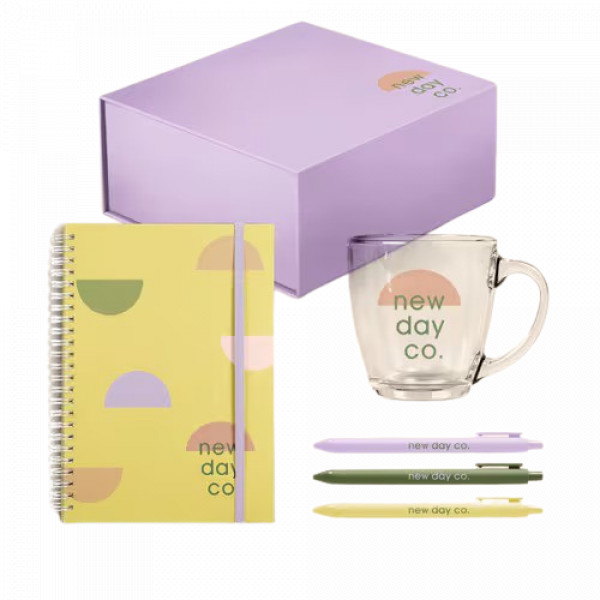 The On The Daily Kit is a thoughtfully curated set designed to keep productivity at its peak. Ideal for professionals, students, or anyone who thrives on organization, this kit includes a Size-X Notebook, a Curved Wall Glass Mug, and a trio of Jotter pens, all elegantly packaged in a soft-touch magnetic closure box. As a customizable promotional product, each item can be branded with your logo or message, making it a perfect choice for corporate gifting or marketing campaigns.