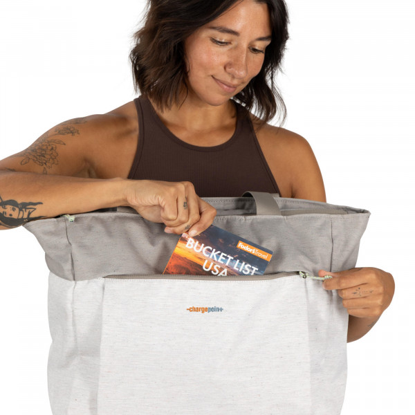 The Osprey Arcane™ Earth Tote is a versatile and eco-conscious promotional product that can be custom decorated or branded, perfect for showcasing your message while supporting sustainability. Crafted from 100% recycled ReComp™ yarn, including 30% factory scraps, and featuring recycled labels and zipper pulls, this tote combines durability with a commitment to reducing waste. Its distinct textures and colors, achieved with minimal dyeing, make each bag unique while conserving water and energy. Designed for both style and function, it includes a zippered main compartment, front pocket, internal organization for essentials, and two water bottle pockets that accommodate most 40oz bottles. The tote also features dual carry handles, a padded bottom to stand upright, a 16” padded laptop sleeve, and a trolley pass-through for easy travel, all backed by Osprey’s All Mighty Guarantee.