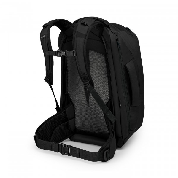 - Stowaway backpanel, harness, and hipbelt with zippered rear flap for protection
