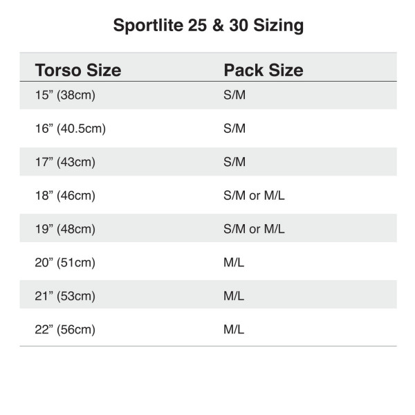 - 25L capacity with unisex fit (S/M fits 15"–19" torso)