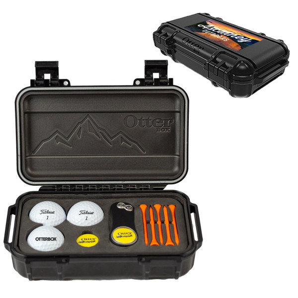 Kit Includes: One Otterbox Drybox with a foam insert, a Pitchfix Hybrid 2.0 divot tool, one extra Pitchfix ball marker, three Titleist Pro V1 golf balls, and five 2-3/4" Golf Tees.