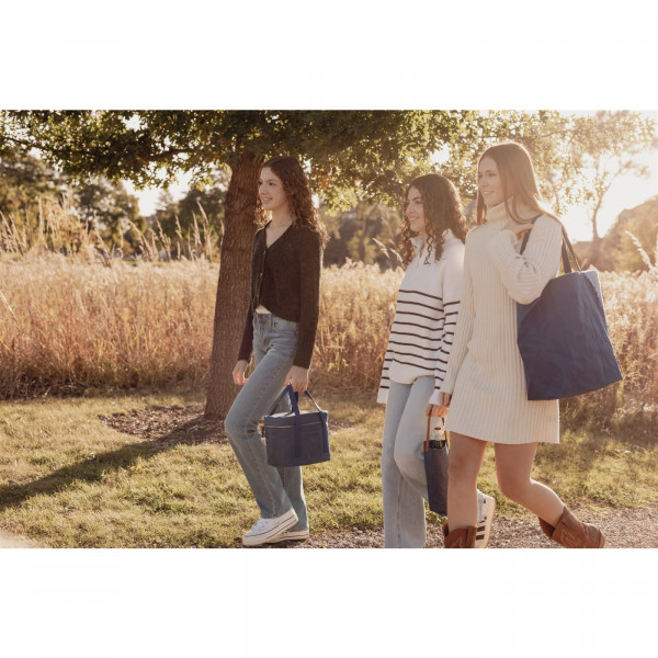 Where function meets style, the Out of The Woods® Leo Lunch Cooler features a sleek navy exterior with eye-catching gold accent zippers for a clean, modern look. Lightweight yet spacious, it includes a front zippered pocket for utensils or condiments and an insulated interior designed to keep meals fresh throughout the day. Structured enough for everyday use and versatile enough for workdays or weekend getaways, this cooler folds flat for easy storage. As a promotional product, it can be custom decorated or branded to showcase your logo in a stylish, practical way.