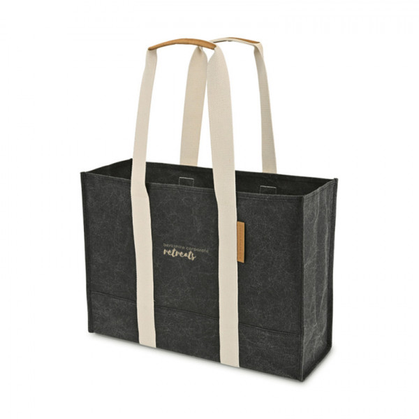 Elevate your everyday carry with a sustainable twist using this large, rugged-style market tote. Made from eco-conscious washable paper that mimics the look and feel of worn leather, this spacious tote blends style, function, and environmental responsibility. Ideal as a custom-branded promotional gift, it’s perfect for work, school, errands, or the beach.