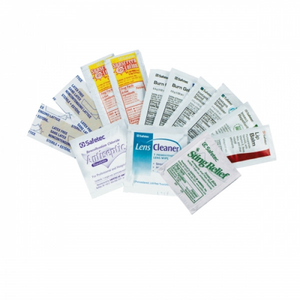 ::Kit Includes A Bag With The Following Packets: 2 Sunscreen Lotion, 1 Lip Balm, 2 Instant Hand Sanitizer, 2 Insect Repellent, 2 Sting Relief Wipe, 2 Lens Cleaner Wipe, 1 Skin Lotion, 2 Burn Gel, 2 Antiseptic Wipe And 4 Bandages.::Ingredients Are Printed On The Label.
