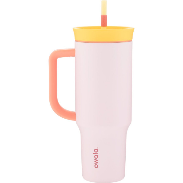 Stay hydrated with the Owala 40 oz Tumbler, designed for convenience, durability, and all-day use. Made from double-wall stainless steel with vacuum insulation, this tumbler keeps your beverages hot or cold for extended periods. The threaded dual-purpose lid features both sip and straw openings, making it easy to enjoy your drink however you prefer. A sturdy handle provides a secure grip, while the powder-coated finish enhances durability and style. Its cup holder-friendly base ensures easy transport on the go.