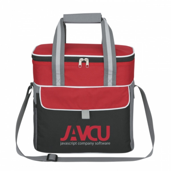 ::Made Of 600D Polyester::PEVA Lining::Adjustable Shoulder Strap And Nylon Web Carrying Handles With Hook And Loop Comfort Grip::Loop For Attaching Pen Or Keys::Side Mesh Pocket::Front Pocket With Hook And Loop Closure::Double Zippered Main Compartment::Holds 18 Cans::Spot Clean/Air Dry