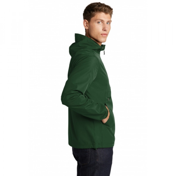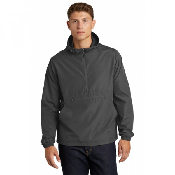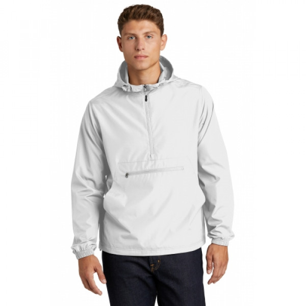 This weather-fighting essential packs into its own front pocket—making it easy to throw it into a gym duffel.::100% polyester shell::Three-panel hood with drawcord and toggles::Tag-free label::Extended reverse coil center front zipper for easy on/off::Elastic at cuffs::Packs into front zippered pocket::Front pouch pocket::Drawcord hem with toggles