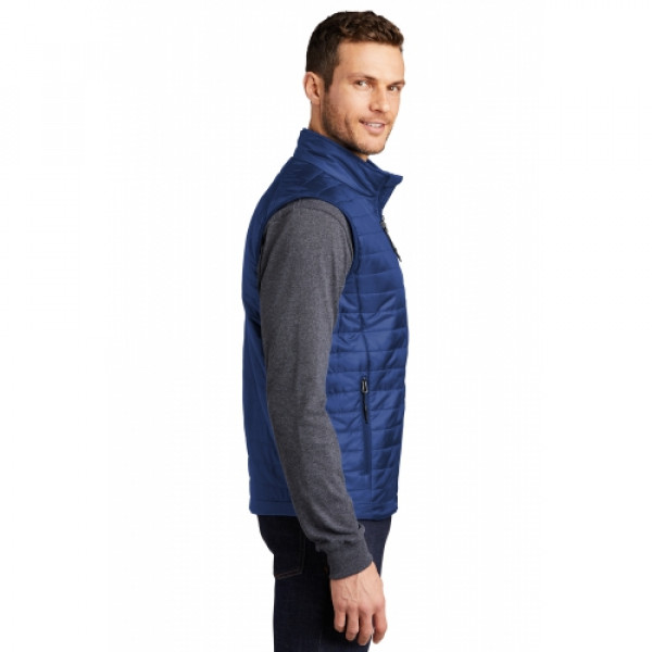 Staying warm while on the go has never been easier with our Packable Puffy Vests. Thanks to a water-repellent fabric coating and finish, you’ll remain comfortable no matter where your day takes you.::100% polyester shell and lining::2.4-ounce, 100% polyfill insulation::Reverse coil zippers::Zippered chest pocket::Front zippered pockets::Adjustable locking drawcord at hem::Port Pocket™ for easy embroidery access::Dyed-to-match drawstring carrying pouch included