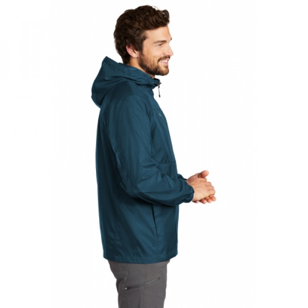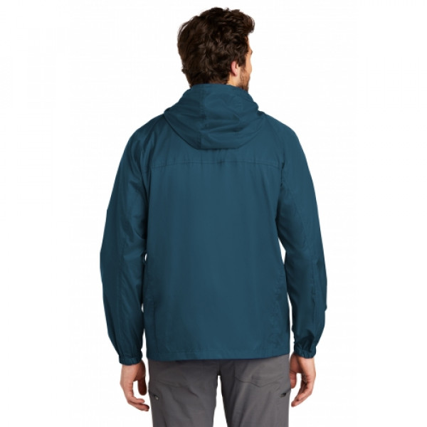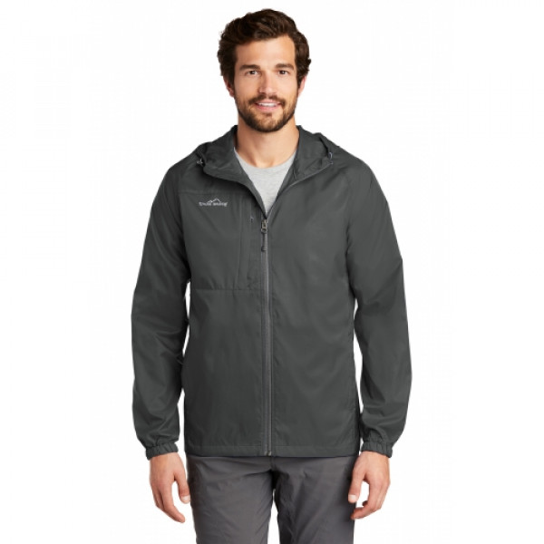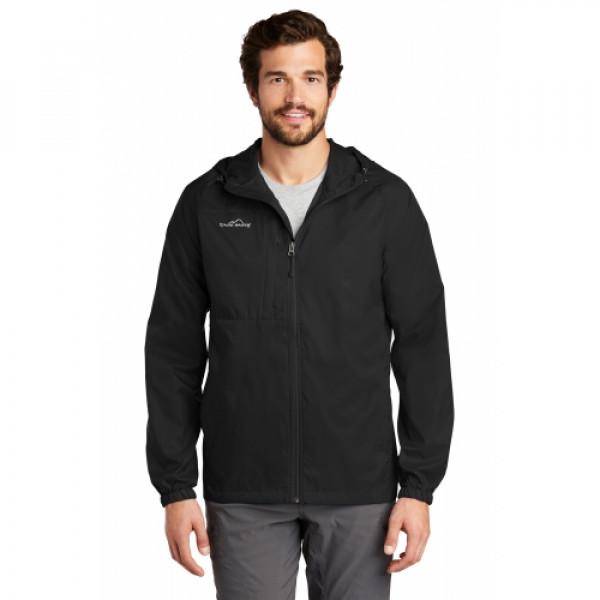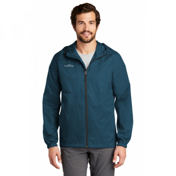 Wind was the inspiration for this compact layer-and it packs down into a pocket, making it easy to carry wherever you go. Hood with drawcord and toggles for adjustability, contrast reverse coil zipper, underarm vents, packable zippered chest pocket, front unzippered pockets, elastic cuffs and an open hem. ::Perfect fall apparel piece::Contrast Eddie Bauer logo on right chest::Made of 100% nylon