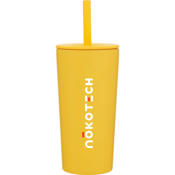 - Threaded lid with thumb tab and silicone straw